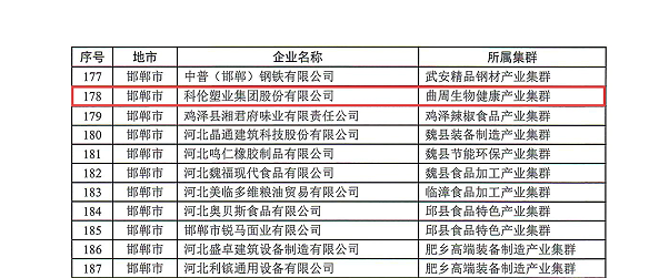 科倫塑業集團股份有限公司獲評河北省特色產業集群“領跑者”企業